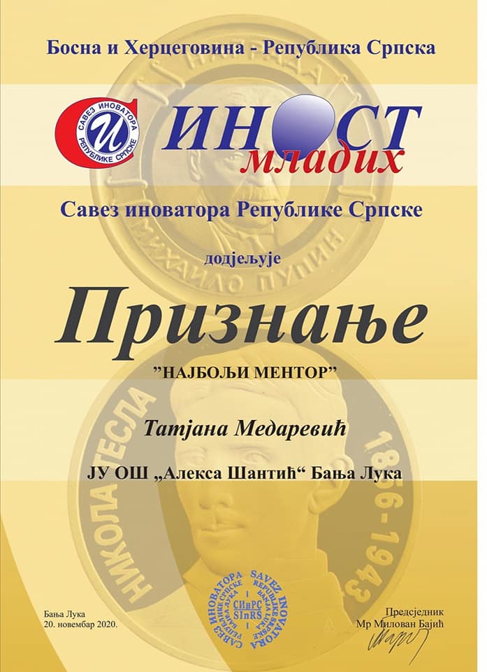 Savez inovatora Republike Srpske i Udruženje grada Banja Luke realizovali su korištenjem onlajn platforme 19. i 20. novembra 2020. godine u Banja Luci 22. Međunarodinu izložbu ideja, inovacija i stvaralaštva mladih “INOST MLADIH 2020”.