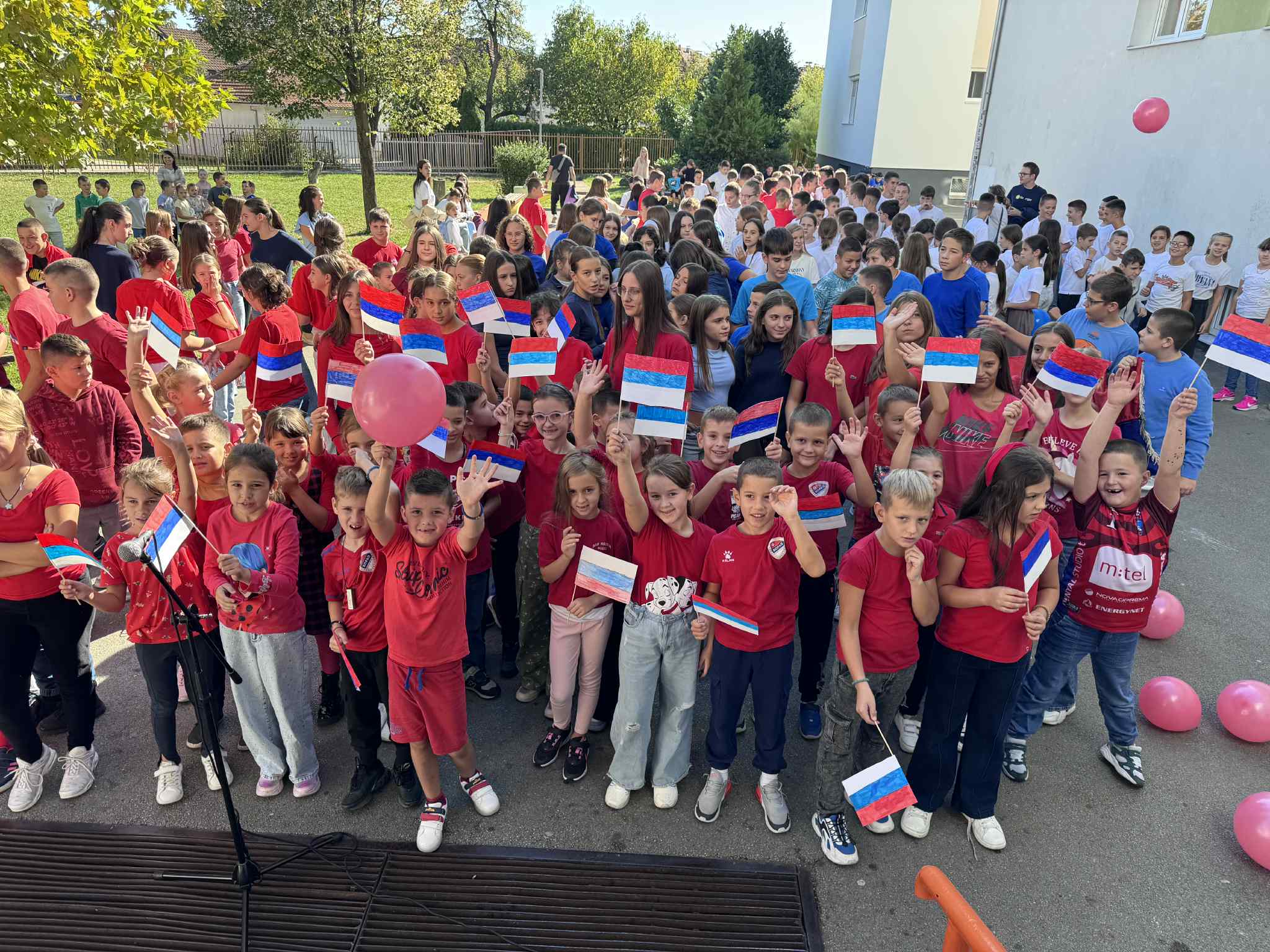15. septembra svake godine u našoj školi se simbolično obilježi Dan srpskog jedinstva, slobode i nacionalne zastave. Ove godine kroz mnoge razrede bile su zastupljene brojne radionice na tu temu, ali je prva smjena na poseban način istakla ovu aktivnost. U petak 19.9. organizovan je svečani program koji je održan u školskom dvorištu, a koji je obuhvatio isticanje zastave i intoniranje himne Republike Srpske i Republike Srbije, kao i zajedničku svečanu fotografiju svih razreda u prvoj smjeni. U tu namjenu djeca su bila obučena u majice koje simbolizuju boje zastave. Takođe, učenici su razvili veliku srpsku trobojku ističući simboliku slobode i jedinstva.