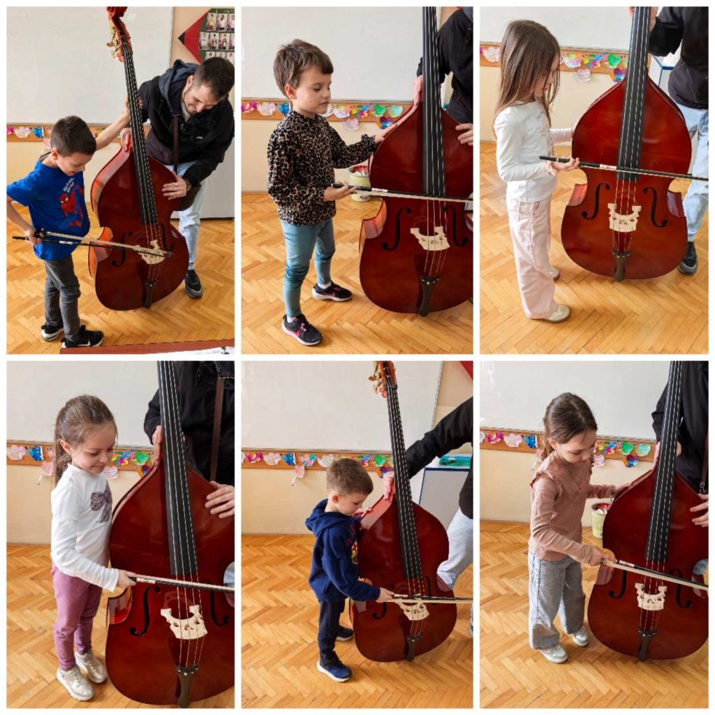 Učenici I2 su na času upoznali instrument kontrabas. Sa velikim interesovanjem su slušali njegov zvuk, okušali se u sviranju i rado pjevali uz njega. Kroz ovu zanimljivu aktivnost naučili su kako se zovu dijelovi instrumenta, kojoj grupi instrumenata pripada.